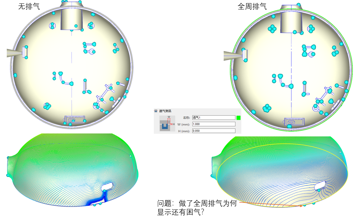 跳出”無法重建完全匹配的澆口與塑件間網格,請問是否要以非匹配方式繼續網格生成”訊息,要如何讓澆口與塑件網格匹配